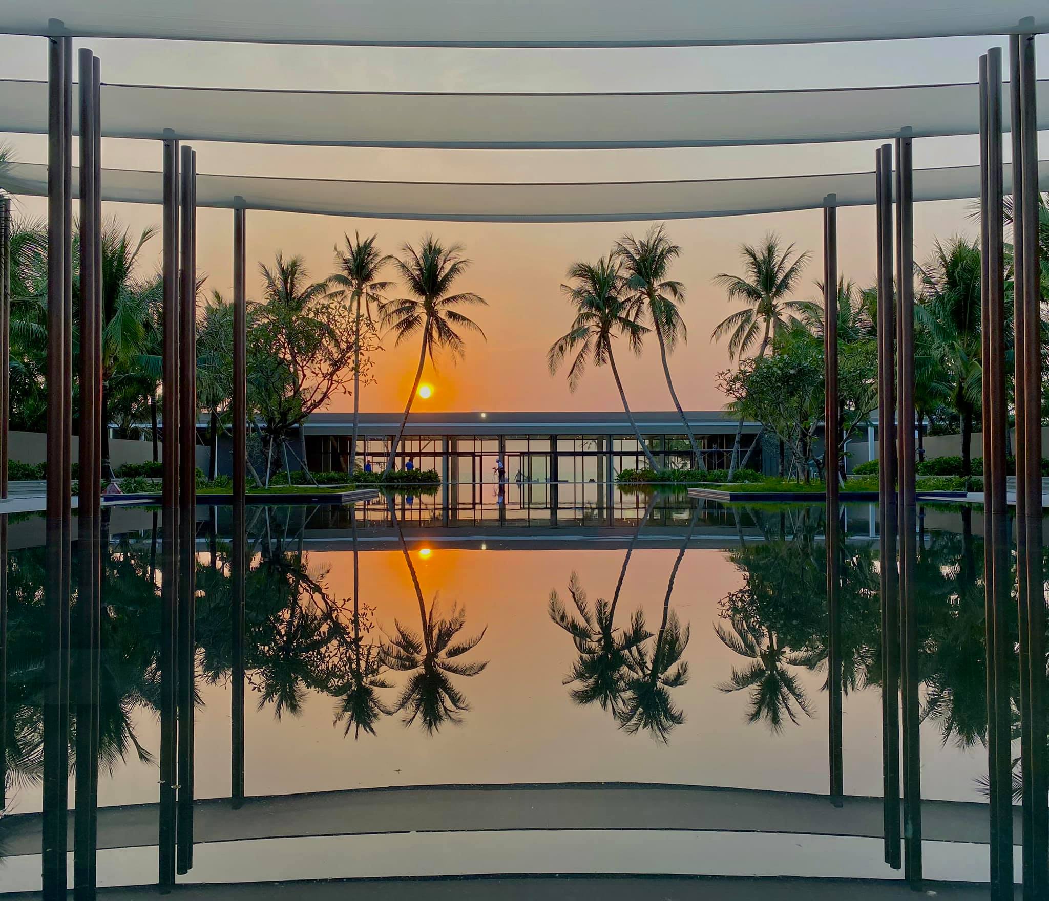 The Regent Phu Quoc, often referred to as a “hidden paradise,” is known for its serene atmosphere, featuring tranquil corridors and a peaceful ambiance amidst lagoons and gardens. Visitors are particularly enchanted by the skies, which transition from red and pink hues to deep purple at sunset.